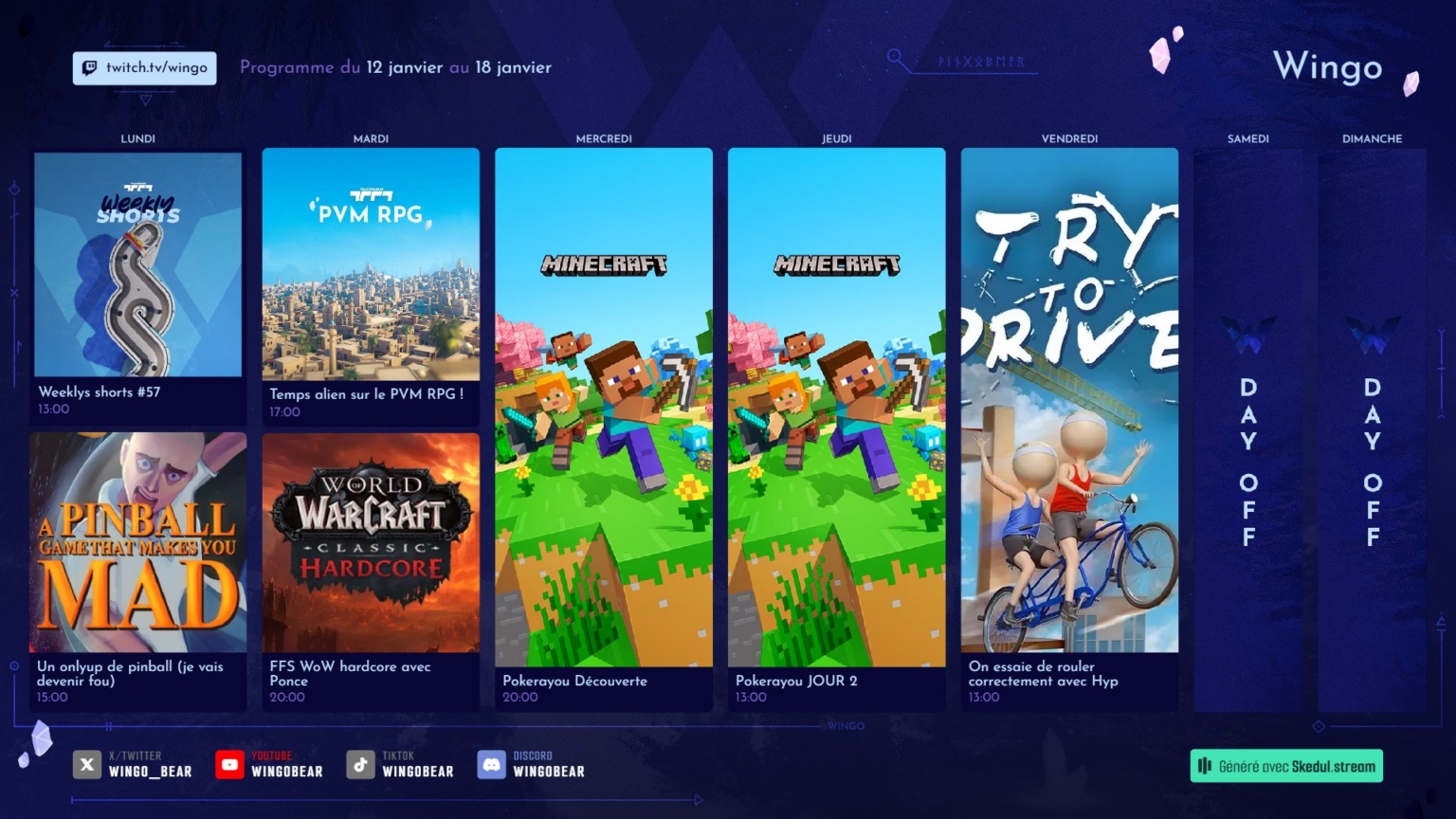 jeudi 15 janv.13:00Pokerayou JOUR 2Minecraft